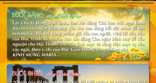 CÙNG CHÚA GIÊSU BUỔI SÁNG Lạy Cha là Đấng trọn lành, con xin dâng Cha hoa trái ngọt lành đầu tiên của ngày hôm nay. Xin cho con dùng hết sức mình để tạo nên một xã hội coi trọng phẩm giá của con người. Nhờ lời cầu bầu của …
