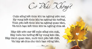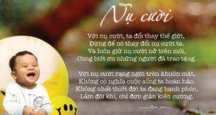 Nơi ý nghĩ, nhiều lắm những tiêu cực, Khiến ngày sống ta thêm phần bi quan. Nhưng nụ cười luôn mang điều tích cực, Vậy tại sao không kiến tạo nụ cười? Chợt vô tình thấy ai đó không cười, Hãy trao họ nụ cười mà ta có. Cũng như …