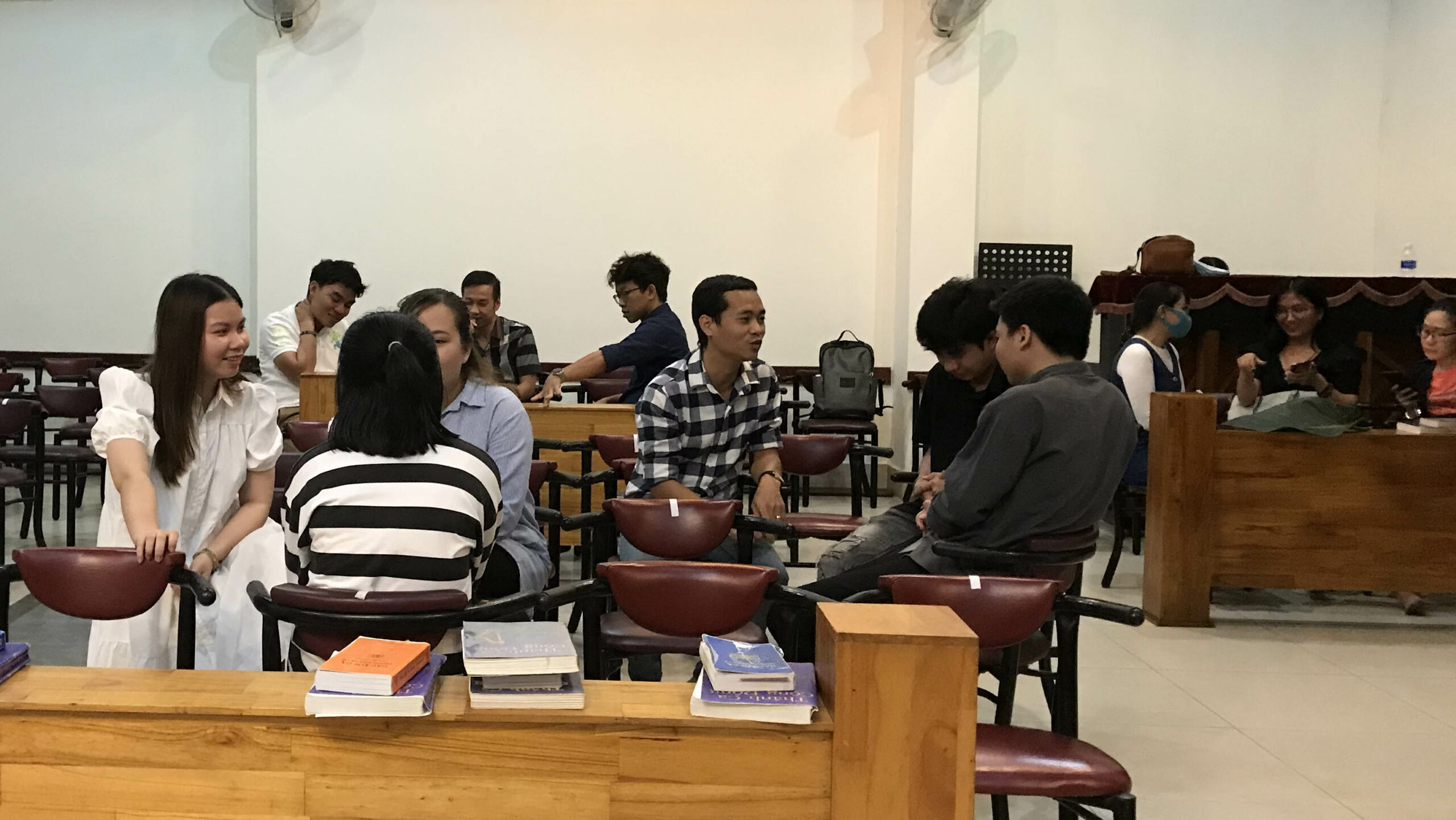 18h, chúng tôi có mặt tại Nhà Nguyện ở trung tâm Đắc Lộ dòng Tên, để tham dự buổi chia sẻ với sự dẫn dắt của thầy Trần Thiên Kính SJ. Thầy đã khéo léo đưa chúng tôi vào khung cảnh của buổi truyền tin, khi sứ thần Gabriel đến gặp Đức Trinh Nữ Maria. Khung cảnh ấy có sự hiện diện của Chúa Cha, Chúa Con, Chúa Thánh Thần, Đức Maria và sứ thần Gabriel. Mỗi sự hiện diện đều có vai trò rất riêng của mình, và câu hỏi đặt ra là: Tôi thấy hình ảnh bản thân rõ nét nhất nơi nhân vật nào trong bối cảnh trên? Là chủ nguồn tin? Là người trung gian đưa tin? Hay là người nhận tin? Và ở vai trò đó, tôi đã làm hay chưa làm gì? Tôi có thể học hỏi điều gì để làm tốt hơn nữa vai trò của mình?