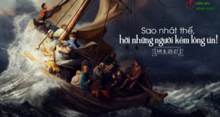 Lời Chúa: Mt 8, 23-27 (23) Ðức Giêsu xuống thuyền, các môn đệ đi theo Người, (24) và kìa biển động mạnh khiến sóng ập vào thuyền. Nhưng Người vẫn ngủ. (25) Các ông lại gần đánh thức Người và nói: “Thưa Ngài, xin cứu chúng con, chúng con chết mất!” (26) Ðức Giêsu nói: …