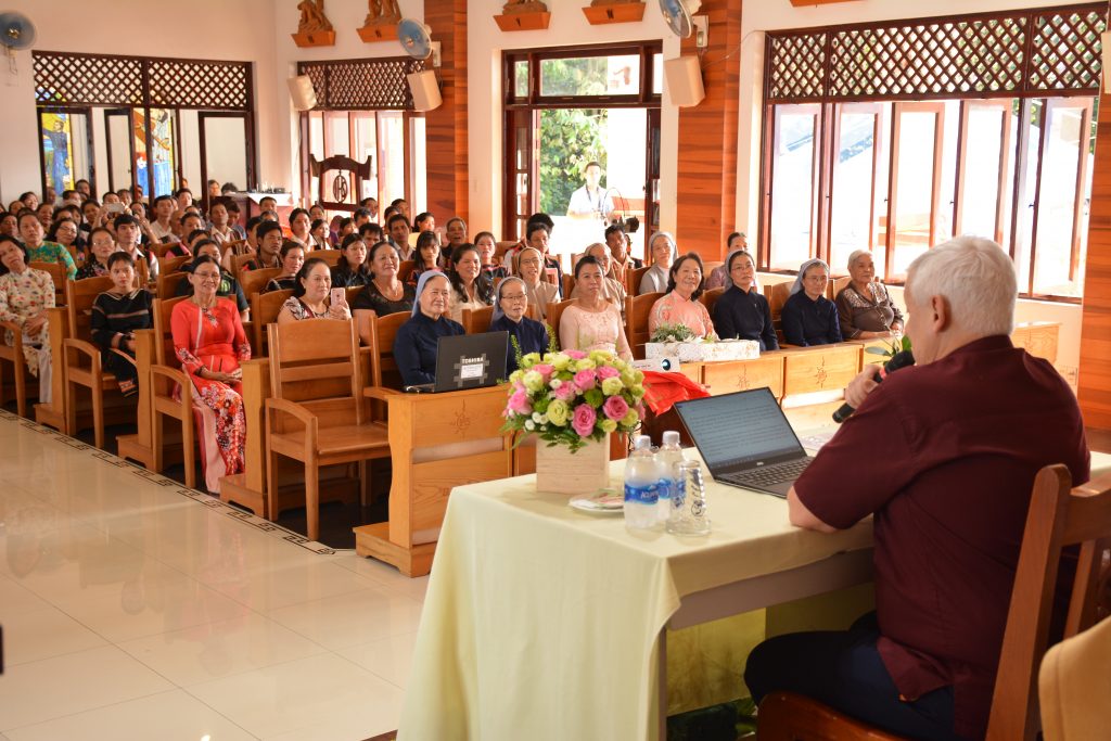 Sau phần chia sẻ của cha Bề Trên Cả, các tham dự viên có cơ hội đặt câu hỏi và cùng ngài trao đổi những vấn đề liên quan đến việc phát triển giáo dục, thăng tiến công bình và truyền bá linh đạo I-Nhã trong Giáo Hội Việt Nam, để không chỉ những người sống đời dâng hiến, nhưng cả giáo dân cũng được phát triển đời sống thiêng liêng và góp phần mình cho công cuộc xây dựng quê hương, đất nước.