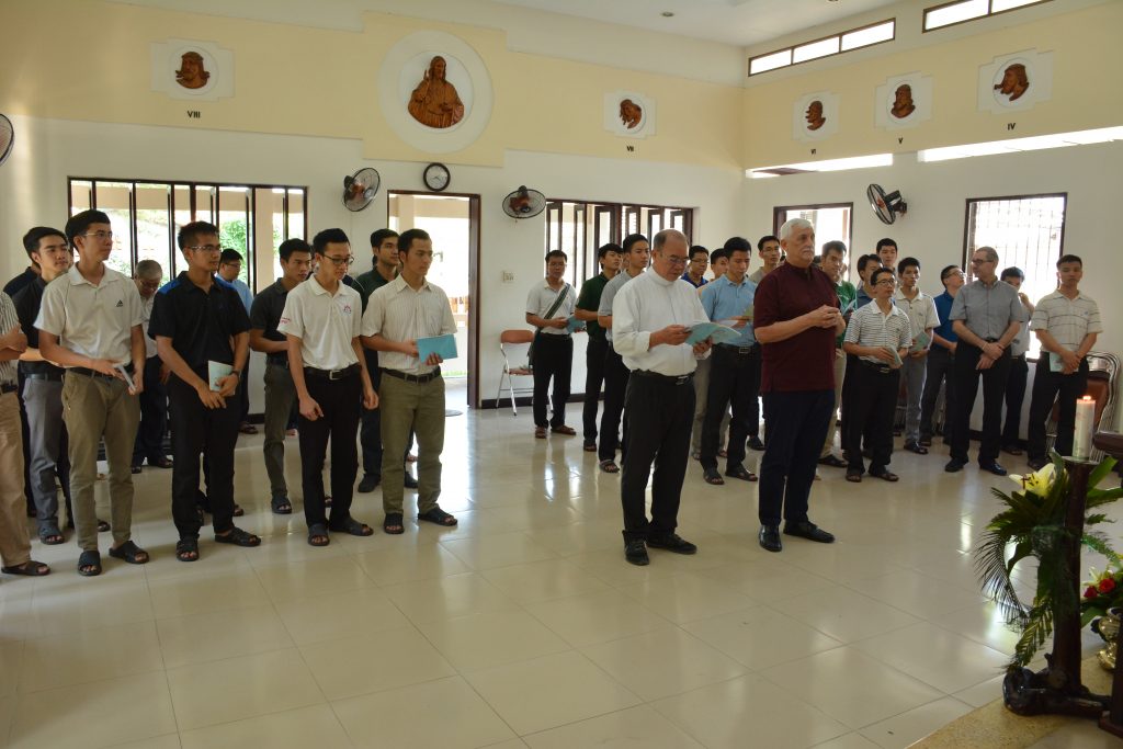 Chia sẻ Tin Mừng Mt (28,16-20), Cha Bề Trên Cả đã nhấn mạnh lòng thương xót của Thiên Chúa trước sự yếu đuối và giới hạn của con người: Chúa đã sai 11 môn đệ chứ không phải 12, Giuđa đã phản bội và cả 11 môn đệ khác cũng bỏ rơi Chúa khi Chúa chịu khổ nạn và đóng đinh. Trước sự yếu đuối và trước sứ mạng cao cả “làm cho muôn dân trở thành môn đệ”, Cha mời gọi cộng đoàn suy ngẫm câu Lời Chúa “Thầy ở cùng anh em mọi ngày cho đến tận thế”. Theo Cha, sứ mạng không đơn thuần là làm gì nhưng là trở nên ai đó, trở nên bạn đường của Chúa, cùng lao tác với Chúa để mang lại sự sống và niềm hy vọng cho thế giới. Cuối cùng, Cha chia sẻ người được sai đi không đơn độc, nhưng được sai đi trong tư cách cộng đoàn: sứ mạng của Giáo Hội luôn được cưu mang cùng với người khác, cùng làm việc, cùng chia sẻ Tin Mừng. Cha đã cầu xin thánh Phanxicô Xaviê bổn mạng của công cuộc truyền giáo và của Tỉnh Dòng, cầu bầu cho cộng đoàn và đặc biệt là ba cha khấn cuối luôn quảng đại, vui tươi, tín thác trong sứ mạng của Thiên Chúa và trong Dòng.