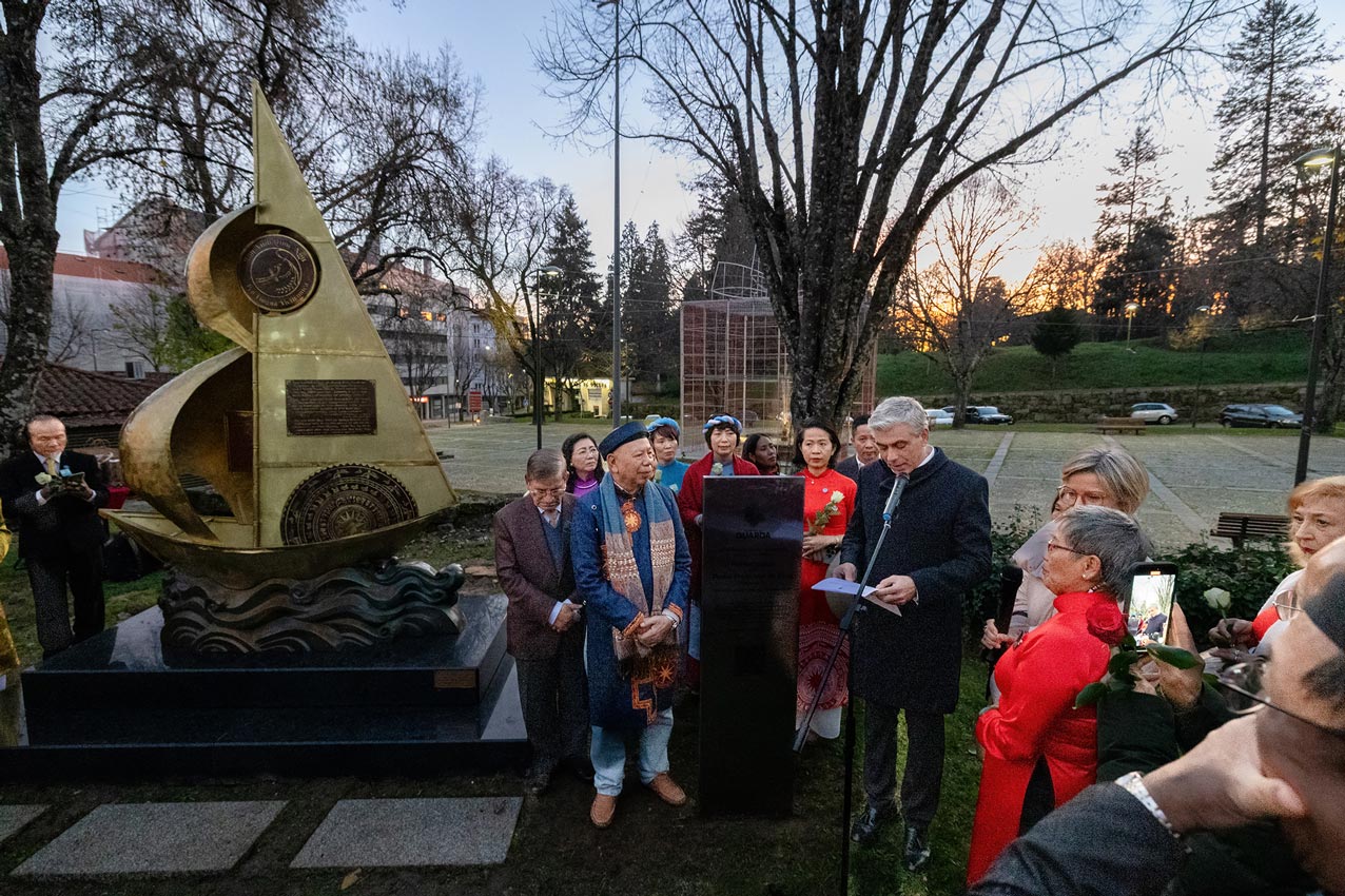 “….Vào ngày 26 tháng 11 năm 2023, một nhóm khoảng hai chục người Việt Nam – sử gia, nghệ sĩ, giáo viên, nhà thơ, nhà văn, nhà báo – hợp tác với Phòng Văn Hoá thành phố Guarda, đã khánh thành tượng đài cha Francisco de Pina SJ trong vườn thư viện thành phố Guarda. Một tượng đài bằng đồng, hình chiếc thuyền buồm cao ba mét đi dưới sóng biển, được hoàn thành, thiết kế và tạo ra ở Việt Nam như một dấu hiệu ghi nhận vị linh mục Dòng Tên, người vẫn còn là một sinh viên trẻ 21 tuổi, đã rời bỏ quê hương Thành phố Giáng sinh hơn bốn trăm năm trước, không bao giờ trở lại đây nữa. Là một nhà truyền giáo và nhà ngôn ngữ học ở Đàng Trong vào thời điểm đó, giờ đây ông đã trở lại nhận vai trò tôn vinh của người Việt, giống như người ta đã khiêng ông đến mộ trong nước mắt khi ông qua đời ở đó, trong một vụ đắm tàu, gần bốn thế kỷ trước. Đó là ngày 15 tháng 12 năm 1625. Và thành quả lao động của ông vẫn còn đó, tại Đàng Trong ngày xưa, để những người khác tiếp tục và phát triển. Tiếp tục với nền tảng của Giáo hội Việt Nam và ngôn ngữ học, như lịch sử đã chứng minh…”