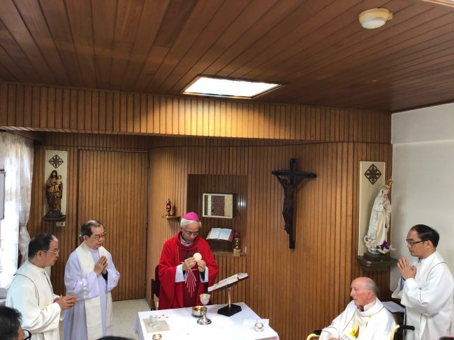 Những người Tập sinh ngày nào ở Việt Nam bắt đầu đến vây quanh vị cha giáo yêu quý của mình. Những người thợ đã 50 năm trên cánh đồng sứ vụ của Dòng Tên VN giờ đây dường như bỗng trẻ lại bên vị cha giáo của mình. Đạt-Tình-Tân-Kiên (Đức cha Cosma Hoàng Văn Đạt, SJ, Cha Giuse Hoàng Văn Tình, SJ. Thầy Đaminh Trần Văn Tân, SJ và Cha JB Nguyễn Trung Kiên, SJ), những cái tên thân thương mà cha giáo Manso đã nhiều năm không gọi, giờ mới có cơ hội vang lên trên môi miệng của ngài hết lần này đến lần khác. Trong niềm vui hội ngộ đó, ngài cũng các tập sinh cũng như tất cả anh em SJ Việt nam đang phục vụ ở Đài Loan đã cùng nhau dâng Thánh lễ tạ ơn đặc biệt.