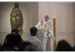 Dân Chúa luôn luôn trên từng bước đường. Luôn luôn như thế. Mỗi khi Dân Chúa dừng chân, thì họ trở nên như những tù nhân trong ngục, như con lừa trì trệ, họ sẽ chẳng hiểu, sẽ không tiếp bước, sẽ không đào sâu đức tin và tình yêu mến, sẽ không thanh tẩy tâm hồn. Còn chúng ta, mỗi chúng ta cũng đang trên đường hoàn tất thời gian, hoàn tất cuộc sống, và tìm kiếm Thiên Chúa. Chúng ta hãy nghĩ về các tông đồ, về những nhà truyền giáo. Các ngài trước tiên đã được Thiên Chúa yêu mến và tuyển chọn, các ngài yêu mến Dân Chúa, các ngài luôn luôn trên bước hành trình. Chúa Giêsu đã ban Chúa Thánh Thần cho chúng ta vì chúng ta vẫn còn trên đường lữ hành, và Thần Khí thúc đẩy chúng ta tiến bước: đây là hoạt động vĩ đại của lòng thương xót Chúa. Mỗi người chúng ta đang trong hành trình hoàn thành thời gian của chính mình. Chính lời hứa của Thiên Chúa cũng đang tiếp diễn và Giáo Hội ngày nay tiếp tục tiến bước.