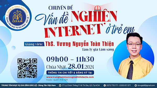 Nhằm cung cấp cho phụ huynh và quý vị đồng hành với trẻ em, vị thành niên những kiến thức cơ bản về “nghiện” Internet và kỹ năng giúp trẻ sử dụng Internet hữu hiệu, Trung Tâm Mục Vụ Gia Đình- Đắc Lộ (Dòng Tên) trân trọng giới thiệu