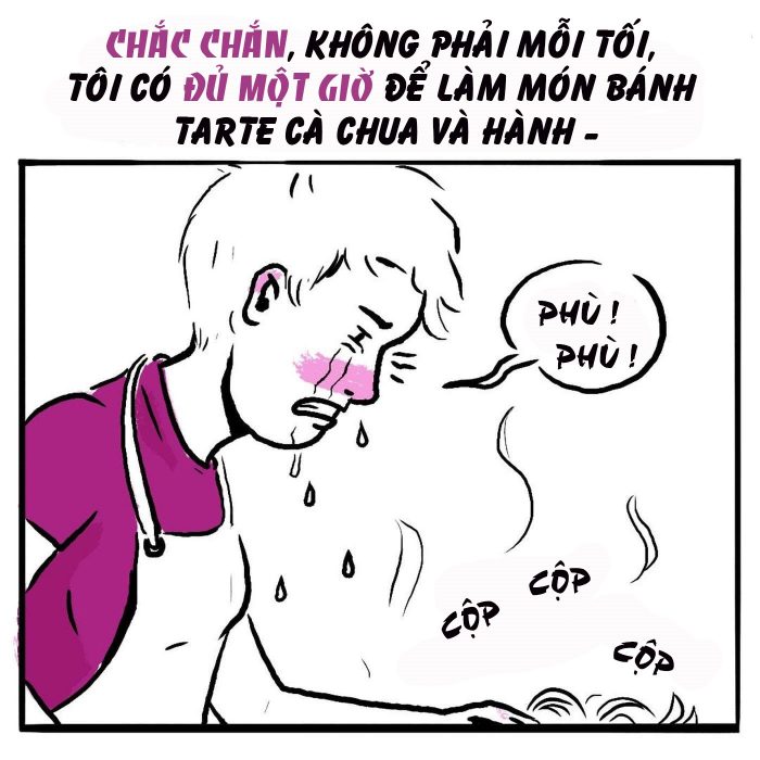Thời gian khác, một trong hai chúng tôi trông con, người còn lại phải loay hoay nấu ăn.