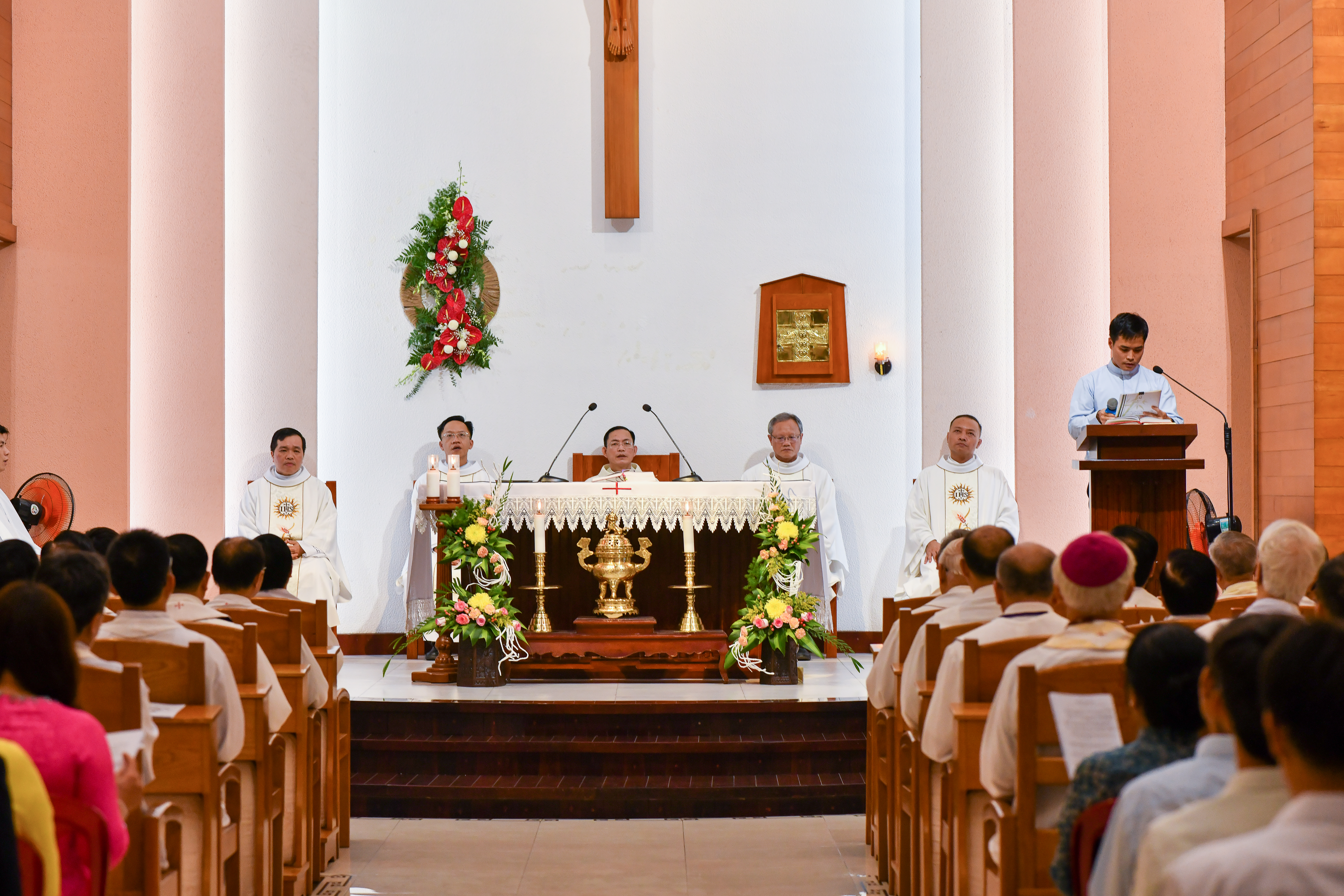 Cha Giuse Phạm Đình Cư, trong bài giảng thánh lễ, đã chia sẻ về ước muốn căn bản của một tu sĩ Dòng Tên trong tư cách là người môn đệ Đức Giêsu: ước muốn được ở cùng và sẵn sàng để được sai đi bất cứ nơi đâu, làm bất cứ việc gì cho vinh danh Chúa hơn. Theo đó, “các bậc cha anh trong Dòng, một số đã về với Chúa, nhiều vị vẫn còn ở đây giữa chúng ta, đã từng ở Giáo Hoàng Học Viện Piô X Đà Lạt, ở nông trường Lô 6 Củ Chi, ở với bà con sắc tộc, thậm chí là ở trong tù. Chúng ta được mời gọi ở bất cứ nơi nào có sự hiện diện của Đức Giêsu. Thế nên, việc ở với Đức Kitô không có một nơi chốn cố định, không có vĩnh cư mà là tinh thần ứng trực sẵn sàng đi bất cứ nơi đâu, làm bất cứ việc gì cho vinh danh Chúa hơn và mưu ích cho các linh hồn hơn.”