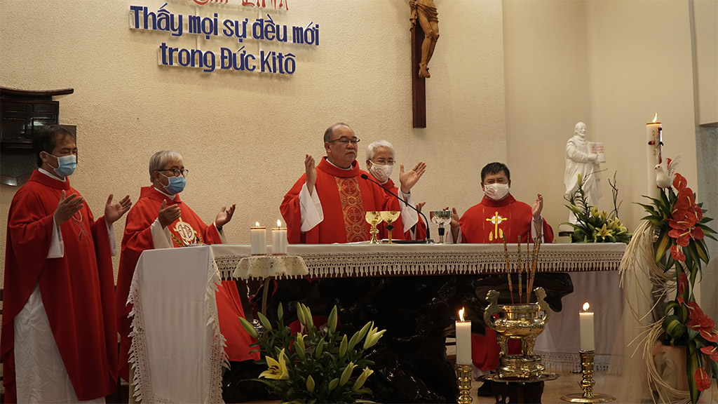 Trong bài giảng, khởi đi từ kinh nghiệm của các Tông đồ được Thánh Thần đổi mới cả tầm nhìn và sứ mạng từ ngày Lễ Ngũ Tuần, cha Giám Tỉnh liên hệ tới tác động của Thánh Thần trên thánh Inhã ngang qua biến cố bại trận và bị thương tại thành Pamplona. Nếu cho đến 30 tuổi, Inhã chỉ “xả thân vào những chuyện hư danh thế tục” và hăng say phục vụ vua Tây Ban Nha thì sau khi bị thương ở Pamplona, ngài khao khát trở thành hiệp sĩ phục vụ Đức Kitô, Vua Hằng Sống. Sau khi được chữa lành thể lý ở Loyola, Inhã lên đường hành hương, sống khổ chế và thanh luyện ở Manresa. Sau khi kinh qua đêm tối đức tin, ngài được Thiên Chúa ban cho ơn hiểu biết thiêng liêng bên bờ sông Cardoner. Được thấy thế giới cùng tất cả con người và tương lai của mình qua ánh mắt của Đức Kitô, Inhã thay đổi lối sống, xả thân phục vụ các linh hồn dưới “cờ Thánh giá của Đức Kitô”. Và để phục vụ tốt hơn, hữu hiệu hơn, ngài thực hiện 3 việc: tìm những người cùng chí hướng để chia sẻ và cộng tác; kiên quyết học tập để trở nên khí cụ sắc bén; và đặt mọi hoạt động dưới sự chỉ dẫn của Giáo Hội qua vị Đại diện của Đức Kitô. Như vậy, Pamplona ghi dấu sự thất bại toàn tập của Inhã nhưng cũng là khoảng khắc đặc biệt trong cuộc đời của Inhã. Vì với ơn hoán cải, Pamplona không còn là đêm tối nhưng từ đây Inhã thấy mọi sự đều mới trong Đức Kitô, từ đây ngài đặt Đức Kitô vào trung tâm đời sống và sứ mạng của mình và chỉ làm mọi sự cho vinh danh Chúa hơn.
