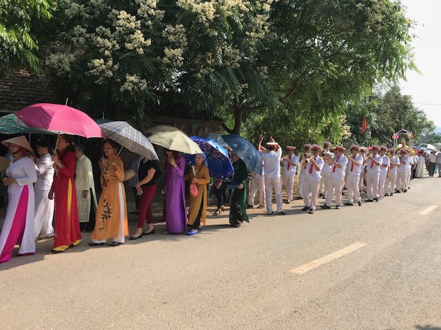 Mở đầu là cuộc rước kiệu giữa trời nắng chang chang trên một đoạn đường dài hơn cây số. Có lẽ đây là lần đầu tiên bà con khu phố Chấu bị cuốn hút vào một khung cảnh tràn ngập âm thanh của lời kinh và sắc màu tôn giáo. Tiếp theo là thánh lễ đồng tế. Hôm nay thì ngôi nhà nguyện ngày thường rộng rãi đã trở thành quá nhỏ, bà con phải ngồi đầy sân. Sau thánh lễ dĩ nhiên là tiệc mừng cùng với phần văn nghệ đầy ắp tiếng cười vui.
