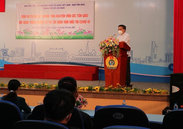 Ngày 13-10-2021 tại Hội trường Nhà Văn hóa Lao động quận Tân Bình – TPHCM, 76 tình nguyện viên (TNV) Công giáo kết thúc một tháng phục vụ tại Bệnh viện Hồi sức chuyên sâu Covid-19 (cơ sở 2 Bệnh viện Ung Bướu) và tại Bệnh viện Nhân Dân Gia Định đã được Ban Thường trực Ủy ban MTTQVN TPHCM tổ chức buổi lễ chào đón và tri ân.