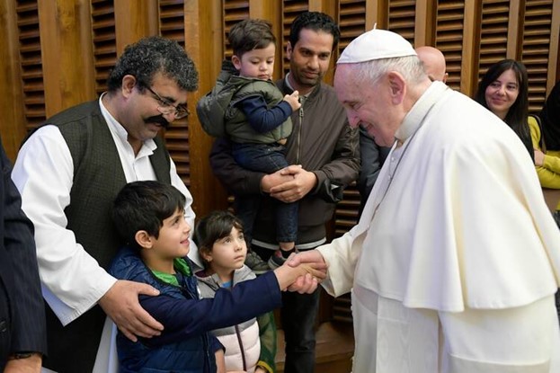 (Đức Thánh Cha Phanxicô gặp gỡ các em thiếu nhi đã cùng với gia đình rời khỏi Afghanistan trong biến cố chính trị vừa qua ở đất nước này trong buổi tiếp kiến chung của ngài 13.10.2021 tại Vatican)