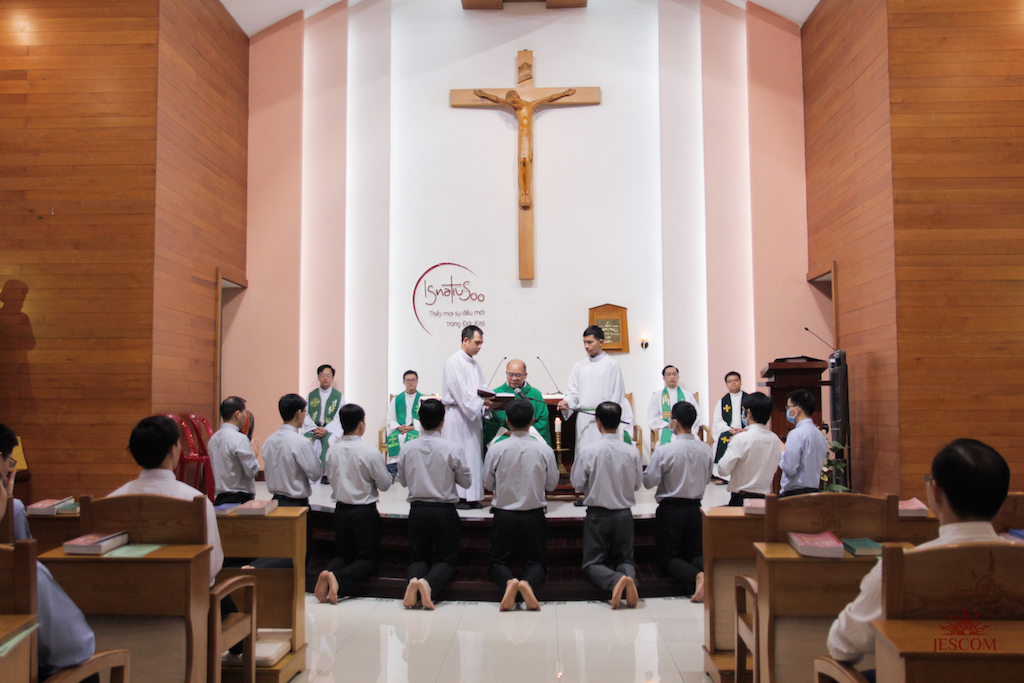 Với người học viên Dòng Tên, 3 ngày tĩnh tâm (triduum) giữa hai học kì là thời gian của ân sủng và tạ ơn, vì anh em không chỉ được nghỉ ngơi đôi chút sau một học kì “dùi mài kinh sử” và truy tìm chân lý trong đường học vấn, nhưng còn được lắng đọng tâm hồn bên Chúa Giêsu, Đấng mà anh em ao ước bước theo sát gót hơn mỗi ngày. Và theo truyền thống, sau triduum, các học viên được trao ban các thừa tác vụ Đọc sách và Giúp lễ, như một phần của tiến trình huấn luyện, ghi dấu từng bước tiến tới chức thánh Linh mục của quý thầy. Các thừa tác vụ được Mẹ Giáo Hội thiết lập, xưa gọi là các “chức nhỏ”, với mục đích chính yếu là để phục vụ dân Thiên Chúa, trở thành tôi tớ của Lời và người phục vụ Thánh Thể. Chính Thiên Chúa, qua các dấu chỉ của nghi thức trao các tác vụ, tuôn đổ ân huệ của Người xuống trên những người được tuyển chọn, hầu giúp họ chu toàn thừa tác vụ được ban để phục vụ dân Người. Và như lời cuối bài giảng của cha Giám tỉnh, ước mong mỗi anh em học viên trẻ trở nên nên những trái ngọt chứ đừng là trái chua, hầu có thể phục vụ tốt hơn cho sứ mạng của Thiên Chúa ngang qua Giáo Hội và Dòng hôm nay.