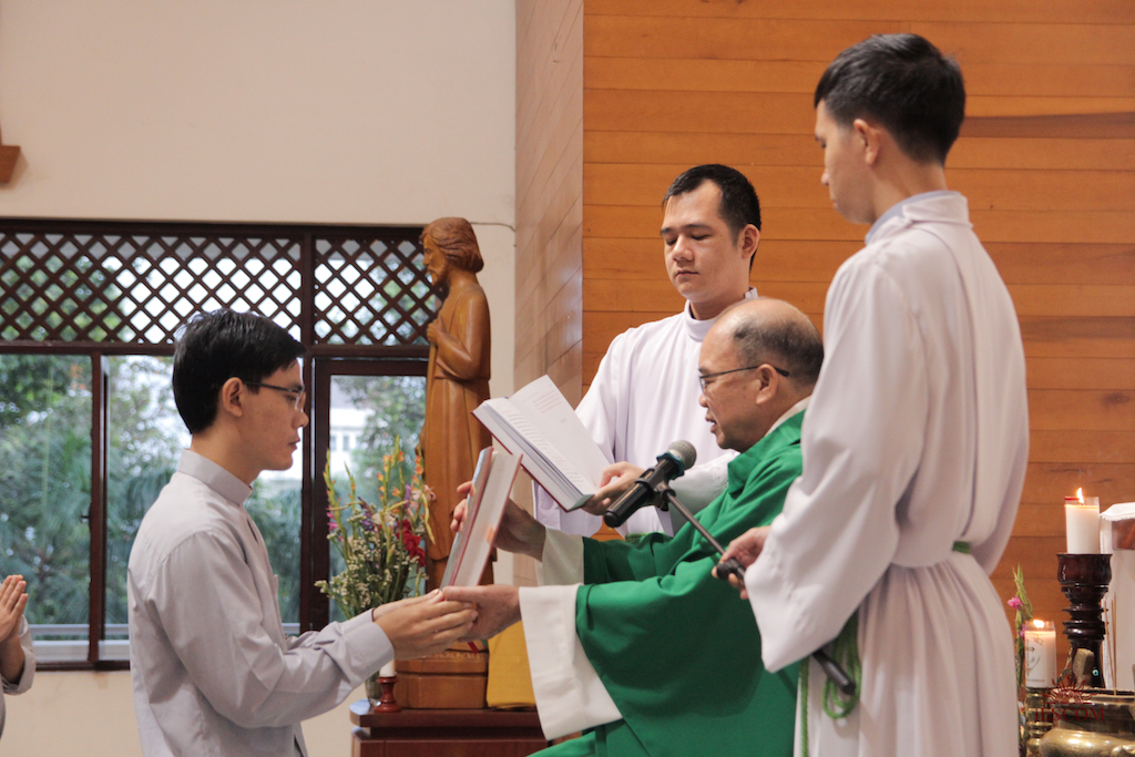 Sau bài giảng, cha Giám tỉnh Vinh Sơn đã trao tác vụ Đọc sách cho 9 thầy thần sinh năm I, tác vụ Giúp lễ cho 4 thầy thần sinh năm II, và tác vụ thừa tác viên ngoại thường cho rước lễ cho các thầy triết sinh và thần sinh năm I.