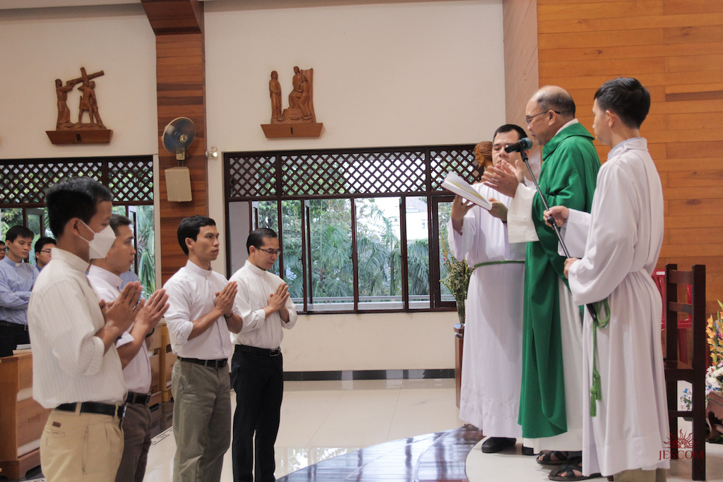 Lúc 6 giờ sáng thứ Ba ngày 11/01/2022, tại nhà nguyện Học Viện Thánh Giuse – Dòng Tên Việt Nam, cha Giám tỉnh Vinh Sơn Phạm Văn Mầm, S.J đã chủ tế Thánh lễ kết thúc triduum (ba ngày tĩnh tâm giữa hai học kỳ) và trao ban các thừa tác vụ cho quý thầy học viên. Hiện diện trong Thánh lễ còn có cha Viện trưởng Giuse Phạm Tuấn Nghĩa, S.J, quý cha Ban Huấn Luyện Học viện, và toàn thể anh em học viên của Dòng.