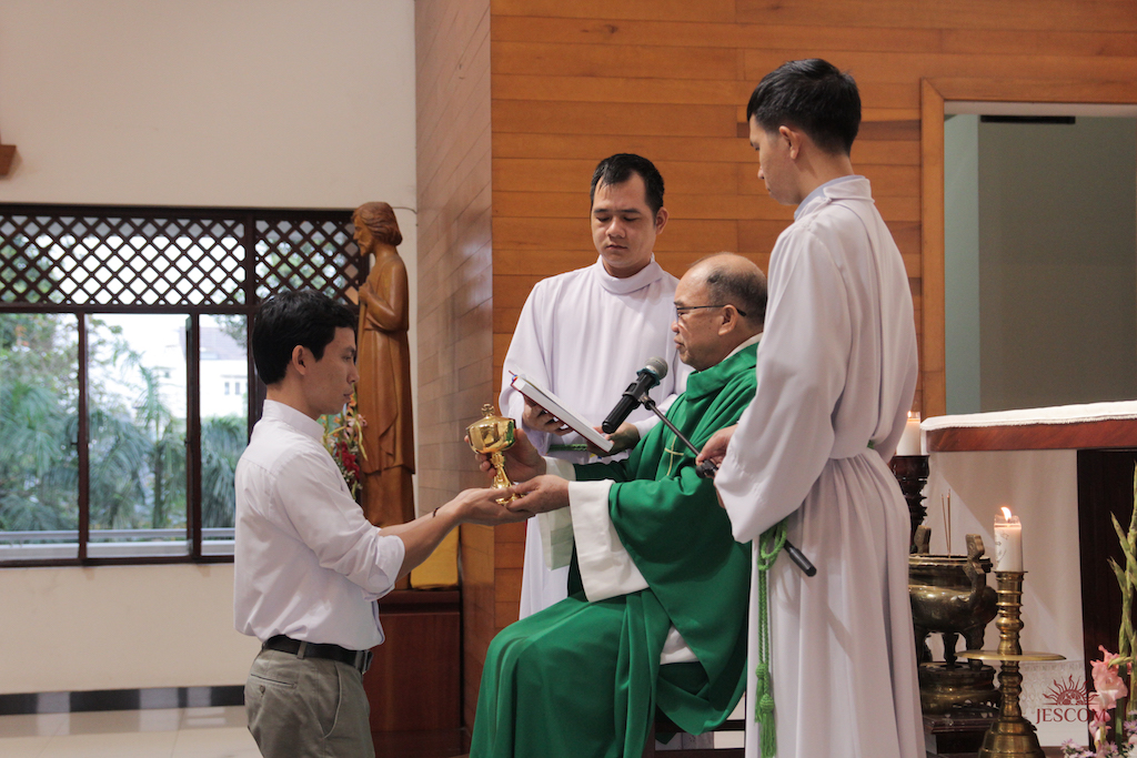 Với người học viên Dòng Tên, 3 ngày tĩnh tâm (triduum) giữa hai học kì là thời gian của ân sủng và tạ ơn, vì anh em không chỉ được nghỉ ngơi đôi chút sau một học kì “dùi mài kinh sử” và truy tìm chân lý trong đường học vấn, nhưng còn được lắng đọng tâm hồn bên Chúa Giêsu, Đấng mà anh em ao ước bước theo sát gót hơn mỗi ngày. Và theo truyền thống, sau triduum, các học viên được trao ban các thừa tác vụ Đọc sách và Giúp lễ, như một phần của tiến trình huấn luyện, ghi dấu từng bước tiến tới chức thánh Linh mục của quý thầy. Các thừa tác vụ được Mẹ Giáo Hội thiết lập, xưa gọi là các “chức nhỏ”, với mục đích chính yếu là để phục vụ dân Thiên Chúa, trở thành tôi tớ của Lời và người phục vụ Thánh Thể. Chính Thiên Chúa, qua các dấu chỉ của nghi thức trao các tác vụ, tuôn đổ ân huệ của Người xuống trên những người được tuyển chọn, hầu giúp họ chu toàn thừa tác vụ được ban để phục vụ dân Người. Và như lời cuối bài giảng của cha Giám tỉnh, ước mong mỗi anh em học viên trẻ trở nên nên những trái ngọt chứ đừng là trái chua, hầu có thể phục vụ tốt hơn cho sứ mạng của Thiên Chúa ngang qua Giáo Hội và Dòng hôm nay.