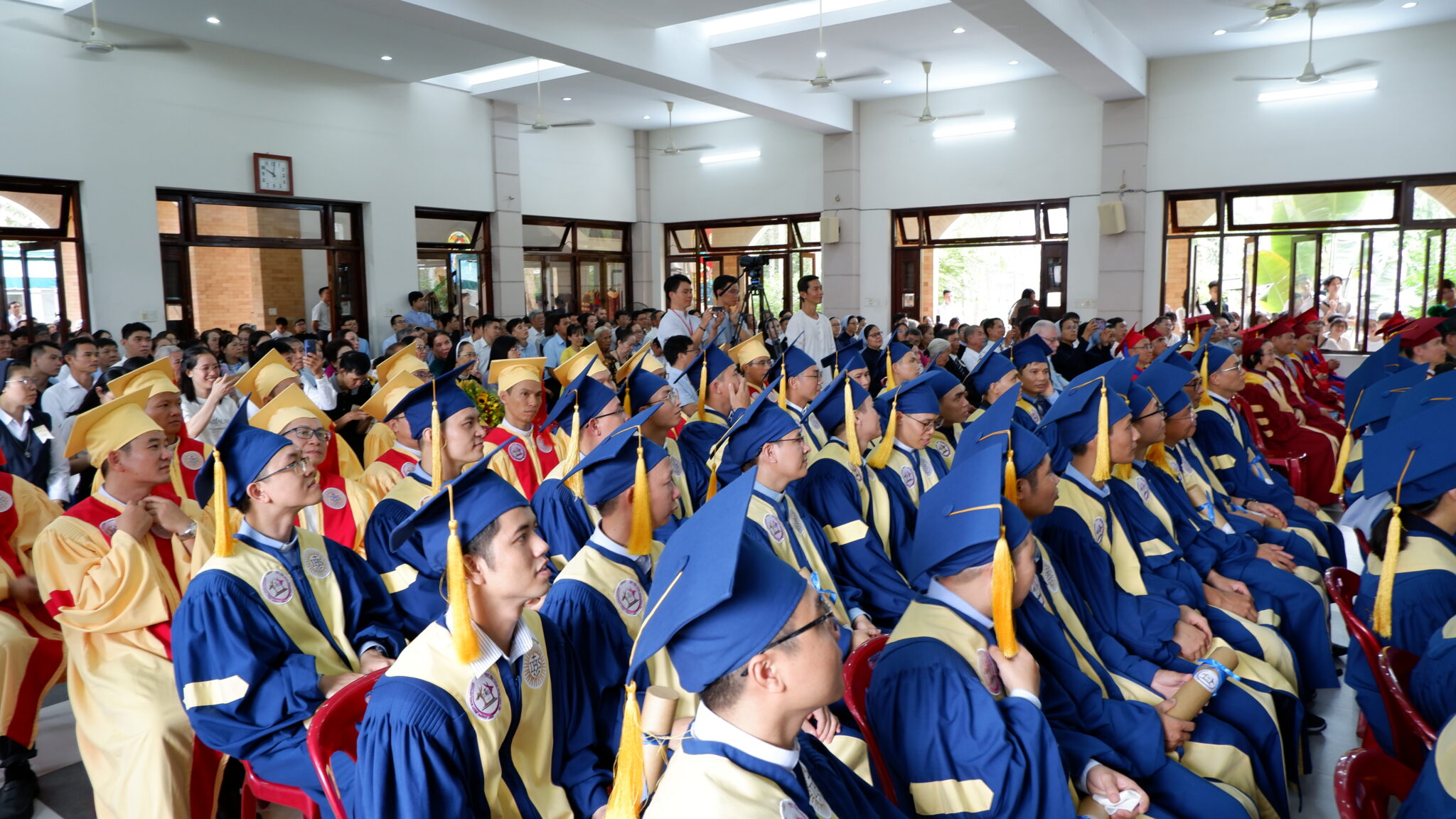 Sau Thánh Lễ là nghi thức trao bằng tốt nghiệp. Nhân dịp này, thầy Tôma-Thiện Nguyễn Đăng Trung đã đại diện các tân khoa bày tỏ lòng tri ân sâu sắc đến quý bề trên, quý giáo sư và quý ân thân nhân đã đồng hành, nâng đỡ các học viên trên con đường đào luyện suốt thời gian qua. Đồng thời, đây cũng là cơ hội để nói lên ước mơ của các tân khoa, những người sẽ rời thế giới của trường ốc, sách vở để đi đến với cuộc gặp gỡ cụ thể nơi tha nhân, nơi những vùng ngoại biên. Một hành trình của người môn đệ truyền giáo, mà ngang qua đó tình yêu của Thiên Chúa được đụng chạm, và đón nhận.