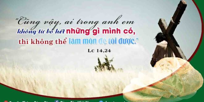 Xem tiếp »Lời Chúa: Lc 14, 25-33 Một hôm, có rất đông người cùng đi đường với Ðức Giêsu. Người quay lại bảo họ: “Ai đến với tôi mà không dứt bỏ cha mẹ, vợ con, anh em, chị em, và cả mạng sống mình nữa, thì không thể làm môn đệ …