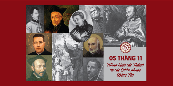 Xem tiếp »Ngày 05 tháng 11, Phụng vụ Dòng Tên hân hoan mừng kính tất cả các Thánh và Chân Phước trong lịch sử của Dòng. Cho đến nay, Dòng Tên đã được Mẹ Hội Thánh tuyên phong 53 vị Hiển Thánh và 155 Chân Phước, phần lớn là các vị …