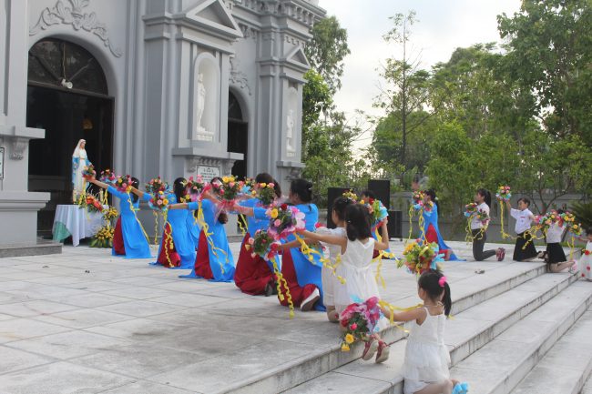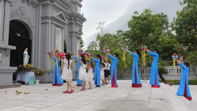 Lạy Mẹ Maria, chúng con xin dâng lên Mẹ những đóa hoa lòng của chúng con, cùng với những ước nguyện riêng từng người. Xin mẹ đón nhận tấm lòng chân thành cùng với những giới hạn của chúng con. Để nhờ ơn Chúa, ngang qua mẹ, chúng con trở nên những người con luôn biết trung tín trong đức tin và có một đời sống xứng đáng làm của lễ dâng lên Chúa và Mẹ mỗi ngày trong đời sống chúng con.
