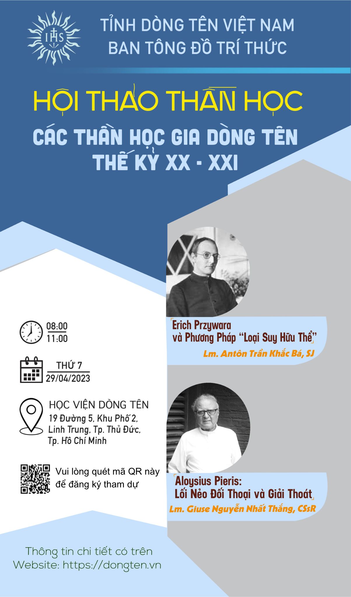trình bày từ 8h-11h thứ Bảy ngày 29/4/2023 tại Học Viện Dòng Tên địa chỉ 19 đường 5, KP2, P. Linh Trung, TP. Thủ Đức.