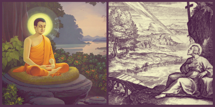 Trong thế ảnh hưởng hỗ tương với tu đức Phật giáo, Linh Thao có thể gợi lên một phương hướng để theo đó mà đi tìm một đường lối thần học Inhã thích đáng. Dù không hoàn toàn thoát khỏi ảnh hưởng của giáo thuyết kinh viện, lối tu đức Tiểu thừa (Theravada) cũng đã giữ lại được khuôn mẫu liệu pháp (therapeutic) nguyên thủy của mình. Đức Phật là một y sĩ chẩn đoán tình cảnh nguy khốn (điều mà người kytô gọi là “tình trạng sa đọa”: fallenness) như là một chứng “khó ở” (disease) trầm trọng kinh niên: dukkha (pain/khổ đau); và nguyên nhân của nó là taneha (greed/lòng tham). đó là hai chân lý cao quý đầu tiên. Chân lý thứ ba xác quyết rằng chứng khó ở không thể chữa lành được nếu không diệt trừ nguyên nhân sinh ra nó; bởi vì chỉ có thể tìm ra được lành mạnh và hoàn hảo ở trong trạng thái không có lòng tham mà thôi! Chân lý thứ tư là liều thuốc; phái thuốc thì ai cũng rõ là con đường trung dung giải phóng khỏi khổ đau, gọi là “con đường tám lối cao quý” (the eightfold noble path); đó là tóm lược nội dung của tu đức nhà Phật; tức là cách thức để nhổ tận gốc lòng tham hay là tính quy ngã (self-centredness).