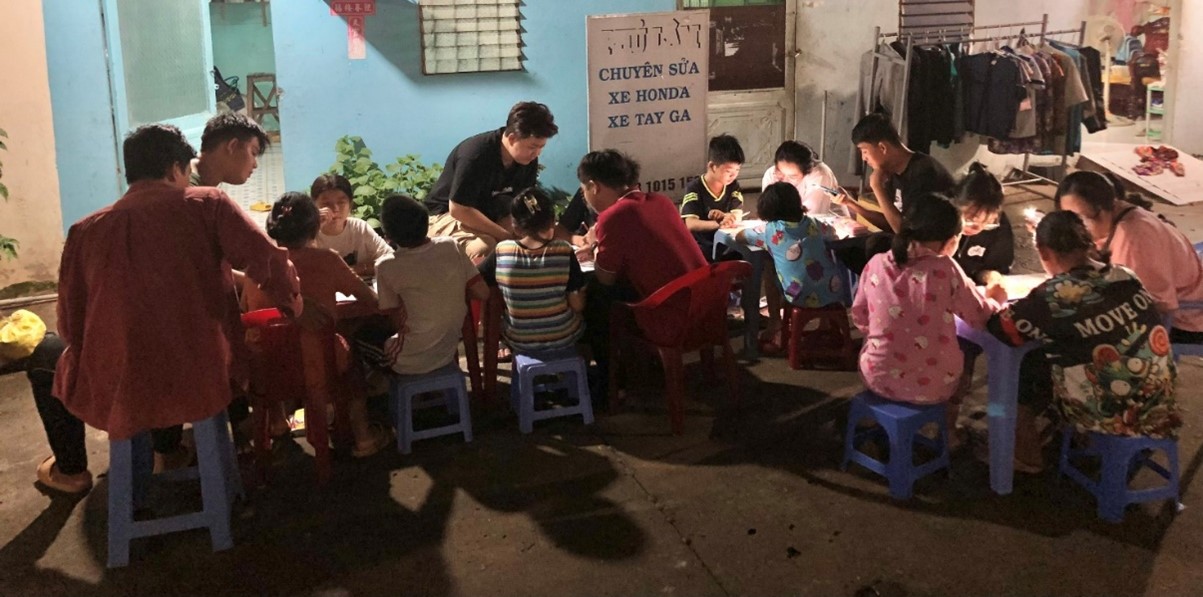 Học sinh là thế, phụ huynh cũng vậy! Xóm nhà lá vốn im ắng giá băng, vì những muộn phiền của một ngày cực nhọc, vật lộn với cơm áo gạo tiền, nay bỗng trở nên sum tụ, ấm áp và chan chứa tình thân. Dãy nhà 26 căn hộ, người thì cho mượn cái ghế, người thì đóng góp cái bàn, người thì tìm bình xịt muỗi, người khác lại đon đả tiếp đãi nước non. Có một người nọ, lần nào cũng nói với chúng tôi rằng: “khi nào trúng vé số, tôi sẽ mua thêm bàn ghế cho các cháu ngồi học”. Tất cả những nỗ lực đó đều nhắm đến một niềm hy vọng, hy vọng vào một ngày mai tươi sáng hơn cho thế hệ con cháu của họ. Quả thế, có lẽ họ đã nghiệm thấy cuộc đời mình chỉ vì không biết con chữ hoặc biết không đến nơi đến chốn, nên nghề nghiệp của họ chỉ là đi phụ hồ và lượm ve chai, rồi trải qua bao gian truân vất vả dưới ánh mặt trời, mà cái nghèo vẫn cứ bám riết lấy mình như thể con ngươi trong hốc mắt. Mở mắt ra là thấy cái nghèo rồi!