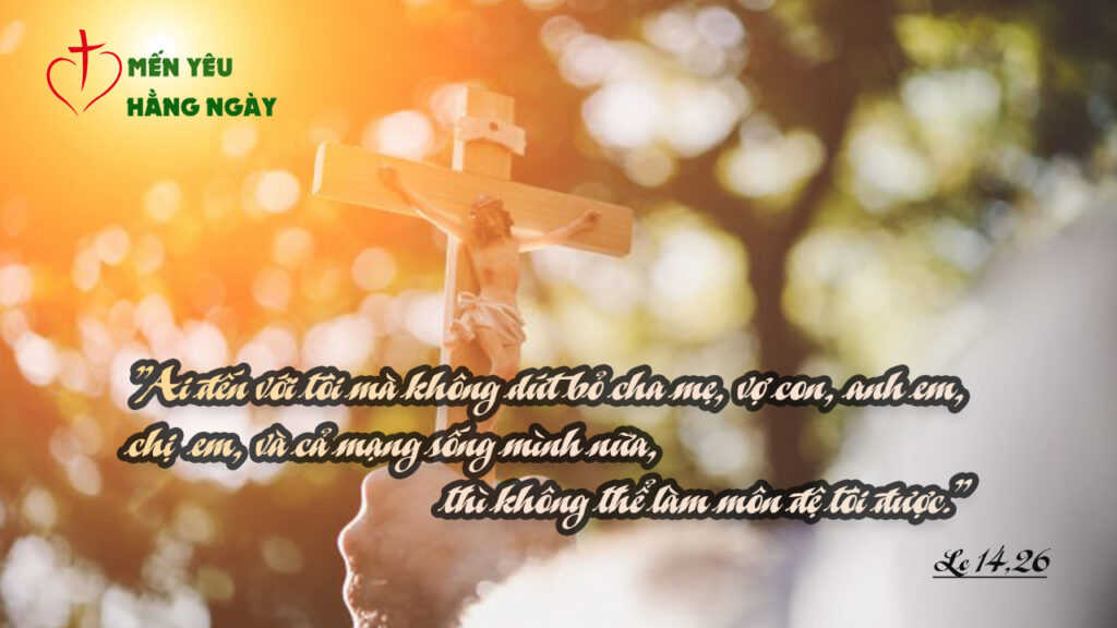 “Ai đến với tôi mà không dứt bỏ cha mẹ, vợ con, anh em, chị em, và cả mạng sống mình nữa, thì không thể làm môn đệ tôi được. Ai không vác thập giá mình mà đi theo tôi, thì không thể làm môn đệ tôi được.