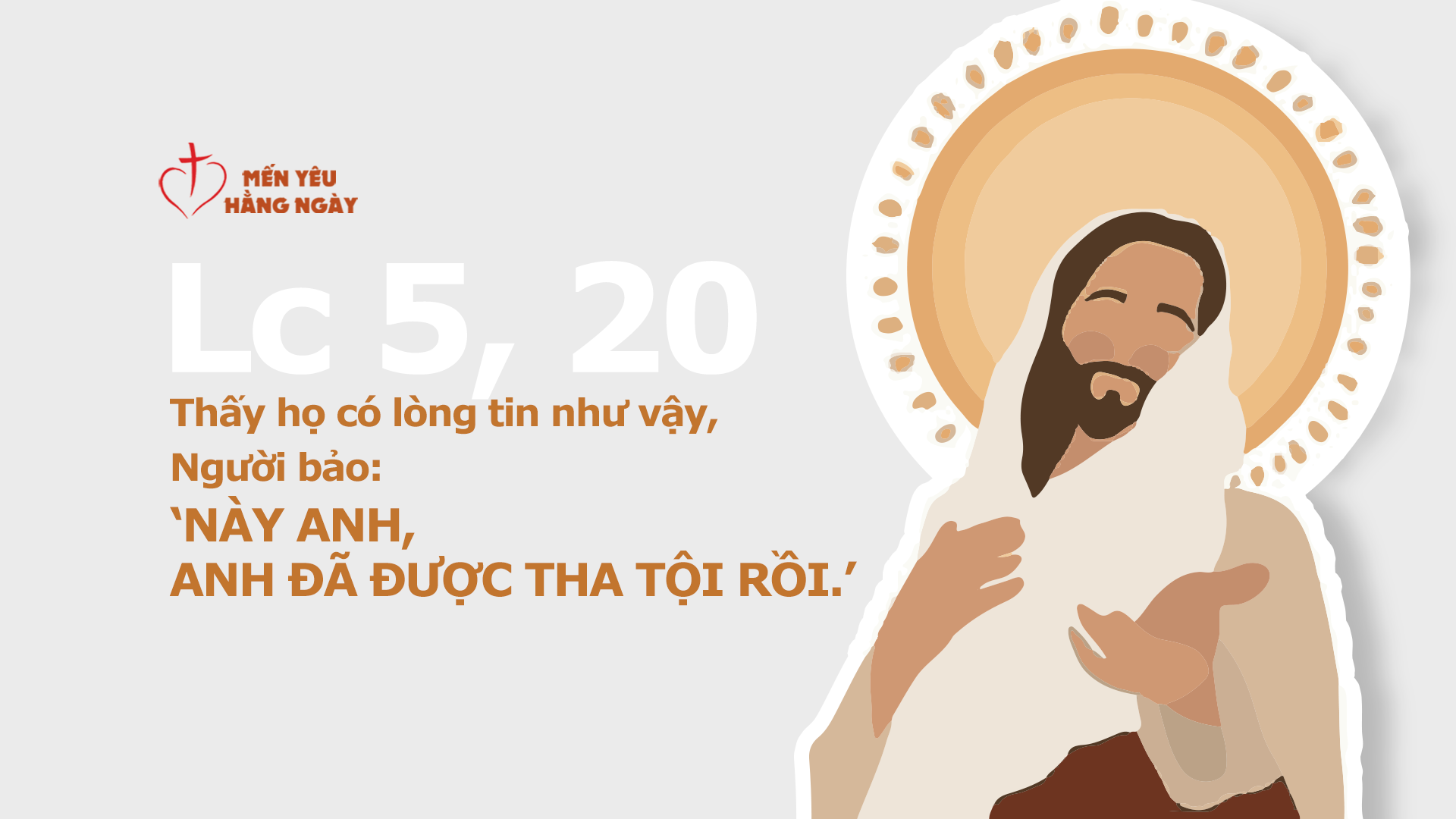 Một hôm, khi Đức Giê-su giảng dạy, có mấy người Pha-ri-sêu và luật sĩ ngồi đó; họ từ khắp các làng mạc miền Ga-li-lê, Giu-đê và từ Giê-ru-sa-lem mà đến. Quyền năng Chúa ở với Người, khiến Người chữa lành các bệnh tật. Bỗng có mấy người khiêng đến một bệnh nhân bị bại liệt nằm trên giường, họ tìm cách đem vào đặt trước mặt Người. Nhưng vì có đám đông, họ không tìm được lối đem người ấy vào, nên họ mới lên mái nhà, dỡ ngói ra, thả người ấy cùng với cái giường xuống ngay chính giữa, trước mặt Đức Giê-su. Thấy họ có lòng tin như vậy, Người bảo: “Này anh, anh đã được tha tội rồi.”