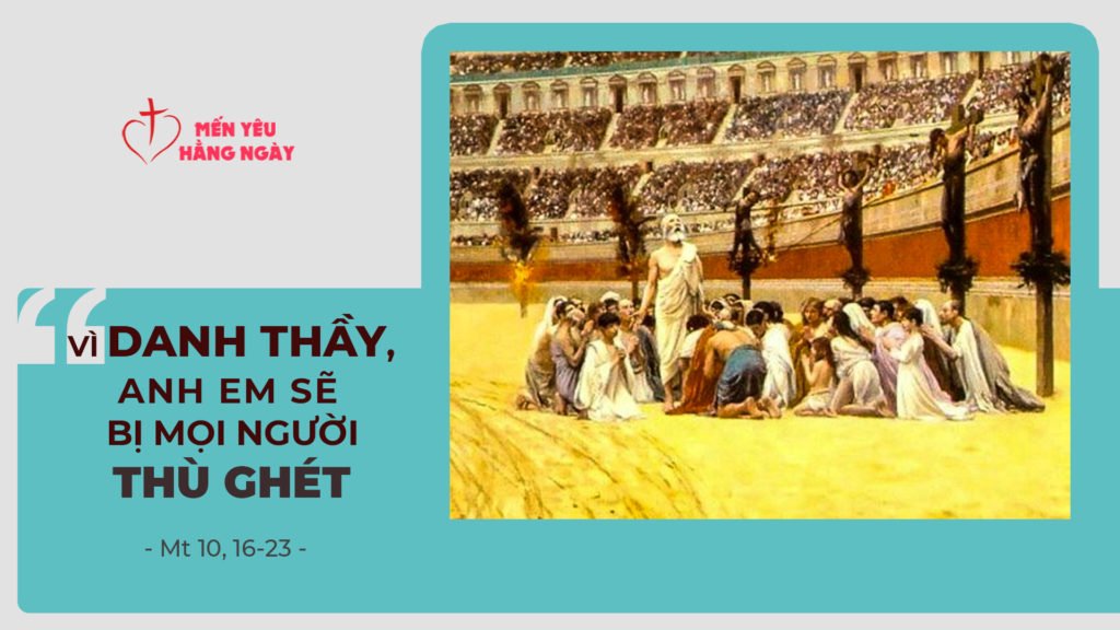 Các minh chứng cụ thể chẳng đâu xa lạ. Qua các kênh báo chí và truyền thông, chúng ta dễ dàng nhận thấy một thái độ thù địch nhắm vào đức tin của người Ki-tô hữu đang ngày một gia tăng. Bởi vậy, giữa một thế giới không được chào đón, chúng ta cần phải bám sát vào lời của Chúa Giêsu hơn bao giờ hết, phải nhận thức rõ lời Ngài và luôn tin tưởng rằng Ngài vẫn luôn hiện diện bên ta, soi sáng để ta biết nên hành động thế nào. Thực thế, Chúa Giêsu chưa bao giờ dạy các môn đệ trả thù trước các bắt bớ, cũng không tìm cách trốn tránh những bách hại: “Kẻ nào dùng gươm sẽ chết vì gươm.” (Mt 26,52) “Nếu ai vả má bên phải của con, thì hãy đưa má bên kia cho nó nữa.” (Mt 5,39) Chính Ngài đã nêu gương chấp nhận và đối diện với những điều ấy bằng thái độ hiền lành, kiên trung, tin tưởng và hy vọng. Chúng ta có thể thấy rõ tấm gương ấy trong Cuộc Khổ Nạn của Chúa Giêsu: “Bị ngược đãi, người cam chịu nhục, chẳng mở miệng kêu ca; như chiên bị đem đi làm thịt, như cừu câm nín khi bị xén lông, người chẳng hề mở miệng.” (Is 53,7) Bài Tin Mừng hôm nay là lời kêu gọi chúng ta giữ vững niềm hy vọng và tin tưởng mạnh mẽ vào tình yêu vô bờ của Thiên Chúa, Đấng không bao giờ bỏ rơi ta.