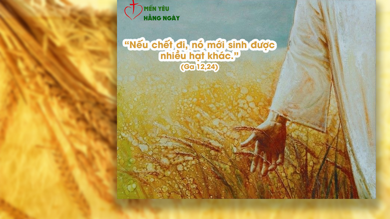 “Thật, Thầy bảo thật anh em, nếu hạt lúa gieo vào lòng đất mà không chết đi, thì nó vẫn trơ trọi một mình; còn nếu chết đi, nó mới sinh được nhiều hạt khác. Ai yêu quý mạng sống mình, thì sẽ mất; còn ai coi thường mạng sống mình ở đời này, thì sẽ giữ lại được cho sự sống đời đời. Ai phục vụ Thầy, thì hãy theo Thầy; và Thầy ở đâu, kẻ phục vụ Thầy cũng sẽ ở đó. Ai phục vụ Thầy, Cha của Thầy sẽ quý trọng người ấy.”