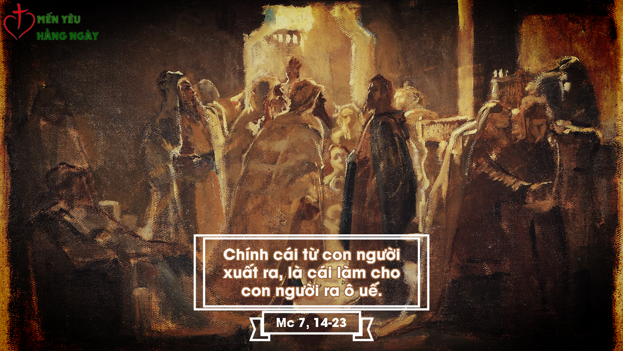Khi Đức Giê-su đã rời đám đông mà vào nhà, các môn đệ hỏi Người về dụ ngôn ấy. Người nói với các ông: “Cả anh em nữa, anh em cũng ngu tối như thế sao? Anh em không hiểu sao? Bất cứ cái gì từ bên ngoài vào trong con người, thì không thể làm cho con người ra ô uế, bởi vì nó không đi vào lòng, nhưng vào bụng người ta, rồi bị thải ra ngoài?” Như vậy là Người tuyên bố mọi thức ăn đều thanh sạch. Người nói: “Cái gì từ trong con người xuất ra, cái đó mới làm cho con người ra ô uế. Vì từ bên trong, từ lòng người, phát xuất những ý định xấu: tà dâm, trộm cắp, giết người, ngoại tình, tham lam, độc ác, xảo trá, trác táng, ganh tỵ, phỉ báng, kiêu ngạo, ngông cuồng. Tất cả những điều xấu xa đó, đều từ bên trong xuất ra, và làm cho con người ra ô uế.”