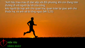 Anh em đã nghe Luật dạy người xưa rằng: Chớ giết người; ai giết người, thì đáng bị đưa ra toà. Còn Thầy, Thầy bảo cho anh em biết: Ai giận anh em mình, thì đáng bị đưa ra toà. Ai mắng anh em mình là đồ ngốc, thì đáng bị đưa ra trước Thượng Hội Đồng. Còn ai chửi anh em mình là quân phản đạo, thì đáng bị lửa hoả ngục thiêu đốt. Vậy, nếu khi anh sắp dâng lễ vật trước bàn thờ, mà sực nhớ có người anh em đang có chuyện bất bình với anh, thì hãy để của lễ lại đó trước bàn thờ, đi làm hoà với người anh em ấy đã, rồi trở lại dâng lễ vật của mình. Anh hãy mau mau dàn xếp với đối phương, khi còn đang trên đường đi với người ấy tới cửa công, kẻo người ấy nộp anh cho quan toà, quan toà lại giao anh cho thuộc hạ, và anh sẽ bị tống ngục. Thầy bảo thật cho anh biết: anh sẽ không ra khỏi đó, trước khi trả hết đồng xu cuối cùng.”