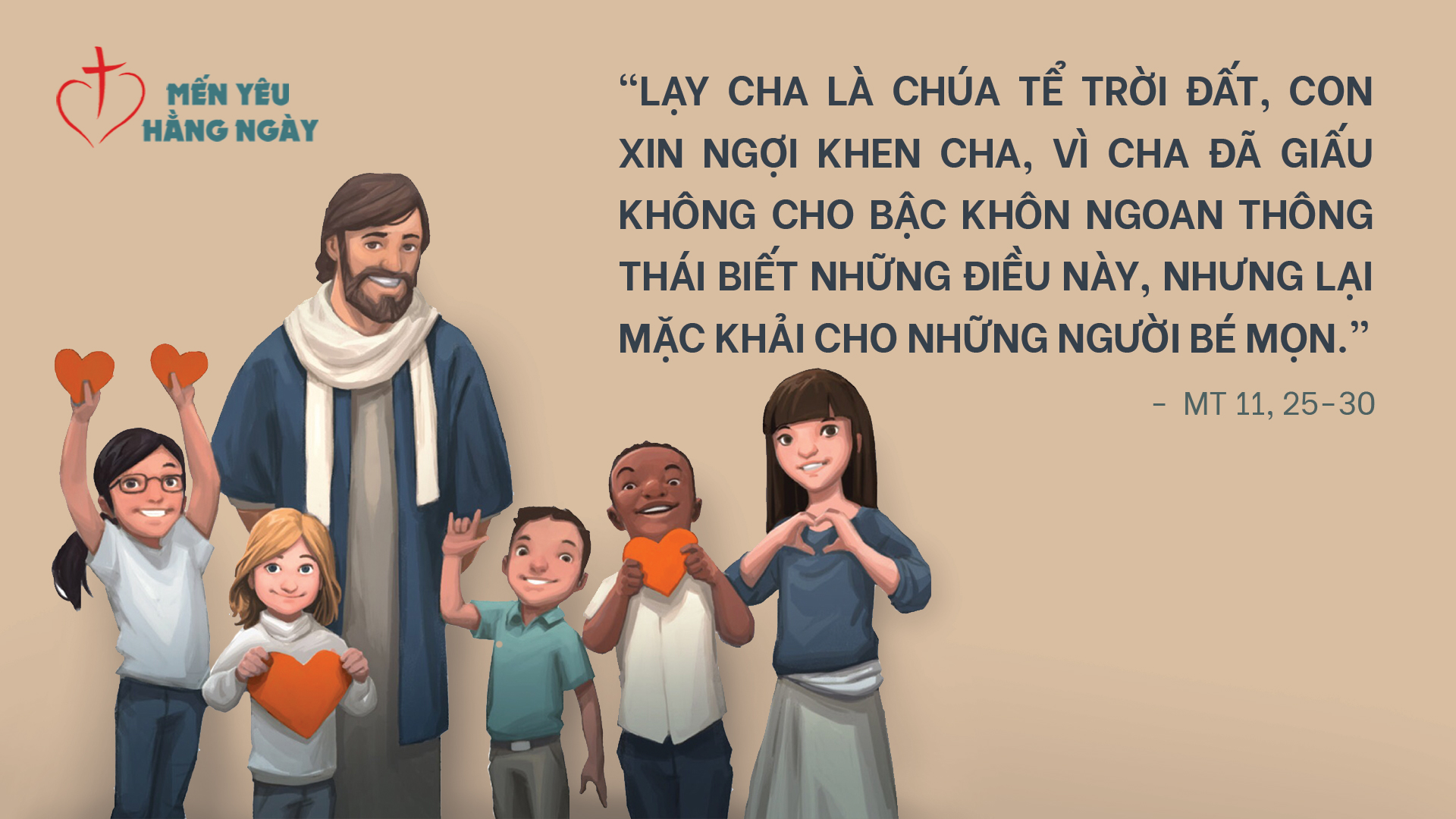 Vào lúc ấy, Đức Giê-su cất tiếng nói: “Lạy Cha là Chúa Tể trời đất, con xin ngợi khen Cha, vì Cha đã giấu không cho bậc khôn ngoan thông thái biết những điều này, nhưng lại mặc khải cho những người bé mọn. Vâng, lạy Cha, vì đó là điều đẹp ý Cha.