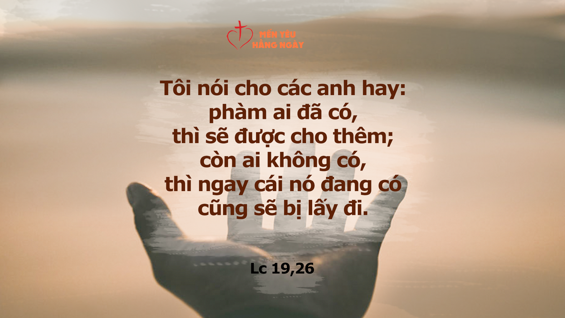 “Sau khi lãnh nhận vương quyền, ông trở về. Bấy giờ ông truyền gọi những đầy tớ ông đã giao bạc cho, để xem mỗi người làm ăn sinh lợi được bao nhiêu. Người thứ nhất đến trình: ‘Thưa ngài, nén bạc của ngài đã sinh lợi được mười nén.’ Ông bảo người ấy: ‘Khá lắm, hỡi đầy tớ tài giỏi ! Vì anh đã trung thành trong việc rất nhỏ, thì hãy cầm quyền cai trị mười thành.’ Người thứ hai đến trình: ‘Thưa ngài, nén bạc của ngài đã làm lợi được năm nén.’ Ông cũng bảo người ấy: ‘Anh cũng vậy, anh hãy cai trị năm thành.’