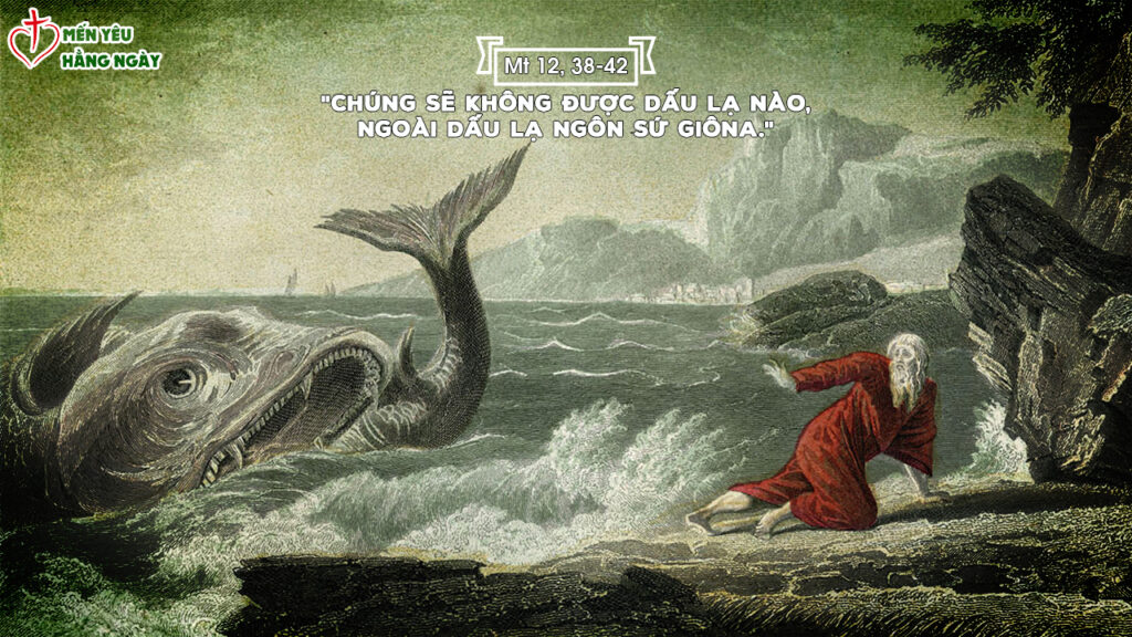 Bấy giờ có mấy kinh sư và mấy người Pharisêu nói với Ðức Giêsu rằng: “Thưa Thầy, chúng tôi muốn thấy Thầy làm một dấu lạ”. Người đáp: “Thế hệ gian ác và ngoại tình này đòi dấu lạ. Nhưng chúng sẽ không được dấu lạ nào, ngoài dấu lạ ngôn sứ Giôna. Quả thật, ông Giôna đã ở trong bụng kình ngư ba ngày ba đêm thế nào, thì Con Người cũng sẽ ở trong lòng đất ba ngày ba đêm như vậy. Trong cuộc phán xét, dân thành Ninivê sẽ chỗi dậy cùng với thế hệ này và sẽ kết án họ, vì xưa dân ấy đã sám hối khi nghe ông Giôna rao giảng; mà đây thì còn hơn ông Giôna nữa. Trong cuộc phán xét, nữ hoàng Phương Nam sẽ đứng lên cùng với thế hệ này, và bà sẽ kết án họ, vì xưa bà đã từ tận cùng trái đất đến nghe lời khôn ngoan của vua Salômôn; mà đây thì còn hơn vua Salômôn nữa.