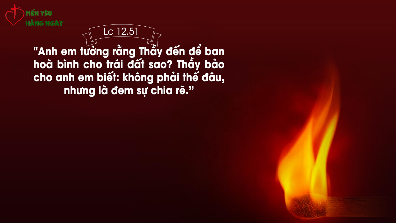 Tại sao Chúa Giêsu đến và ném lửa vào mặt đất? Phải chăng những người đi theo Chúa Giêsu phải chấp nhận tình trạng “cha chống lại con trai, con trai chống lại cha, mẹ chống lại con gái, con gái chống lại mẹ; mẹ chồng chống lại nàng dâu, nàng dâu chống lại mẹ chồng”? Chẳng phải Ngài vẫn thường nói “Thầy ban bình an của Thầy cho anh em” đó sao?