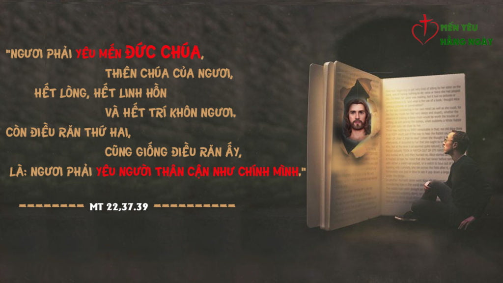 Khi nghe tin Đức Giê-su đã làm cho nhóm Xa-đốc phải câm miệng, thì những người Pha-ri-sêu họp nhau lại. – Rồi một người thông luật trong nhóm hỏi Đức Giê-su để thử Người rằng: “Thưa Thầy, trong sách Luật Mô-sê, điều răn nào là điều răn trọng nhất?” Đức Giê-su đáp: “Ngươi phải yêu mến Đức Chúa, Thiên Chúa của ngươi, hết lòng, hết linh hồn và hết trí khôn ngươi. Đó là điều răn quan trọng nhất và điều răn thứ nhất. Còn điều răn thứ hai, cũng giống điều răn ấy, là: ” Ngươi phải yêu người thân cận như chính mình. Tất cả Luật Mô-sê và các sách ngôn sứ đều tuỳ thuộc vào hai điều răn ấy.”