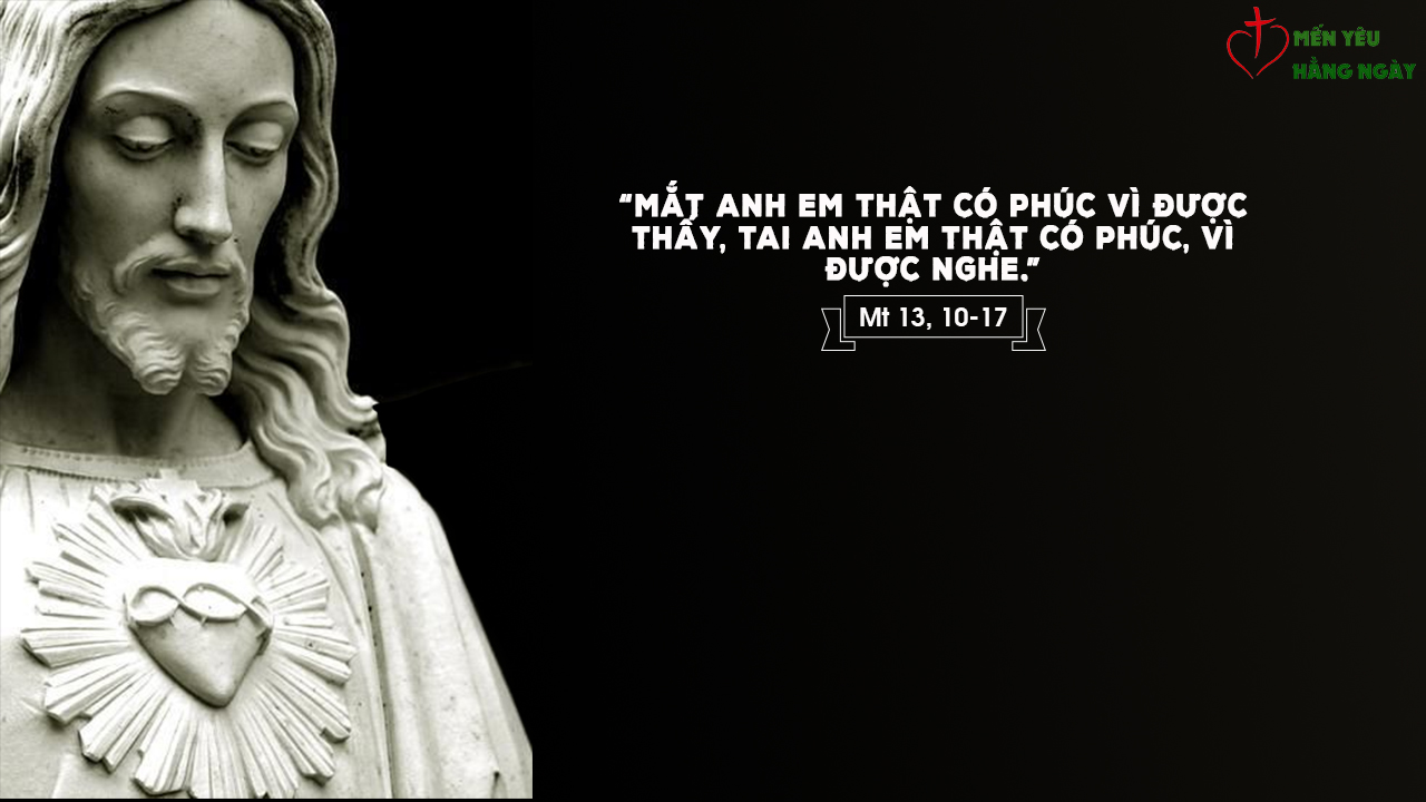 “Các môn đệ đến gần hỏi Đức Giê-su rằng: “Sao Thầy lại dùng dụ ngôn mà nói với họ?” Người đáp: “Bởi vì anh em thì được ơn hiểu biết các mầu nhiệm Nước Trời, còn họ thì không. Ai đã có thì được cho thêm, và sẽ có dư thừa; còn ai không có, thì ngay cái đang có, cũng sẽ bị lấy mất. Bởi thế, nếu Thầy dùng dụ ngôn mà nói với họ, là vì họ nhìn mà không nhìn, nghe mà không nghe không hiểu. Thế là đối với họ đã ứng nghiệm lời sấm của ngôn sứ I-sai-a, rằng: Các ngươi có lắng tai nghe cũng chẳng hiểu, có trố mắt nhìn cũng chẳng thấy; vì lòng dân này đã ra chai đá: chúng đã bịt tai nhắm mắt, kẻo mắt chúng thấy, tai chúng nghe, và lòng hiểu được mà hoán cải, và rồi Ta sẽ chữa chúng cho lành.