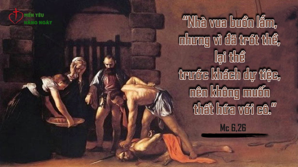 Số là vua Hê-rô-đê đã sai người đi bắt ông Gio-an và xiềng ông trong ngục. Lý do là vì vua đã lấy bà Hê-rô-đi-a, vợ của người anh là Phi-líp-phê, mà ông Gio-an lại bảo: “Ngài không được phép lấy vợ của anh ngài!” Bà Hê-rô-đi-a căm thù ông Gio-an và muốn giết ông, nhưng không được. Thật vậy, vua Hê-rô-đê biết ông Gio-an là người công chính thánh thiện, nên sợ ông, và còn che chở ông. Nghe ông nói, nhà vua rất phân vân, nhưng lại cứ thích nghe.