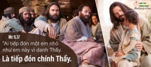 Sau đó, Đức Giê-su và các môn đệ đến thành Ca-phác-na-um. Khi về tới nhà, Đức Giê-su hỏi các ông: “Dọc đường, anh em đã bàn tán điều gì vậy?” Các ông làm thinh, vì khi đi đường, các ông đã cãi nhau xem ai là người lớn hơn cả. Rồi Đức Giê-su ngồi xuống, gọi Nhóm Mười Hai lại mà nói: “Ai muốn làm người đứng đầu, thì phải làm người rốt hết, và làm người phục vụ mọi người.” Kế đó, Người đem một em nhỏ đặt vào giữa các ông, rồi ôm lấy nó và nói: “Ai tiếp đón một em nhỏ như em này vì danh Thầy, là tiếp đón chính Thầy; và ai tiếp đón Thầy, thì không phải là tiếp đón Thầy, nhưng là tiếp đón Đấng đã sai Thầy.”