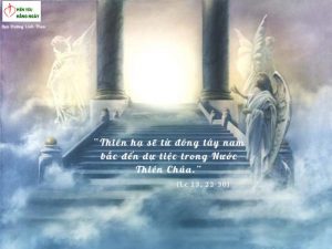 “Bấy giờ anh em sẽ khóc lóc nghiến răng, khi thấy các ông Áp-ra-ham, I-xa-ác và Gia-cóp cùng tất cả các ngôn sứ được ở trong Nước Thiên Chúa, còn mình lại bị đuổi ra ngoài. Thiên hạ sẽ từ đông tây nam bắc đến dự tiệc trong Nước Thiên Chúa.