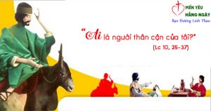 Qua dụ ngôn người Samari tốt lành trong bài Tin Mừng hôm nay, Chúa Giê-su dạy chúng ta có trái tim biết rung động trước những đau khổ của đồng loại và biết chạnh lòng xót thương. Ngài muốn chúng ta thể hiện ra bằng hành động trong mối tương quan với tha nhân. Ngài mong chúng ta nhận ra sự hiện diện của người khác trong cuộc đời mình là vô cùng quan trọng, quan trọng đến mức xem người khác như là chính mình. Chúng ta phải sẵn sàng giúp đỡ người khác với tình yêu và sự quan tâm chân thật, cần phải thể hiện qua hành động cụ thể chứ không chỉ là ý hướng tốt hay tỏ ra thương cảm đơn thuần. Tình yêu ấy phải rộng mở và vô lượng như tình yêu Thiên Chúa. Vì tình yêu Thiên Chúa là vô điều kiện nên chúng ta cần luôn sẵn sàng làm điều thiện hảo cho người khác như chính Thiên Chúa đã làm cho chúng ta vậy. Vậy thay vì hỏi “Ai là anh em tôi? “ thì hãy hành động để trở nên anh em của người khác, “ Hãy đi và làm như vậy “.