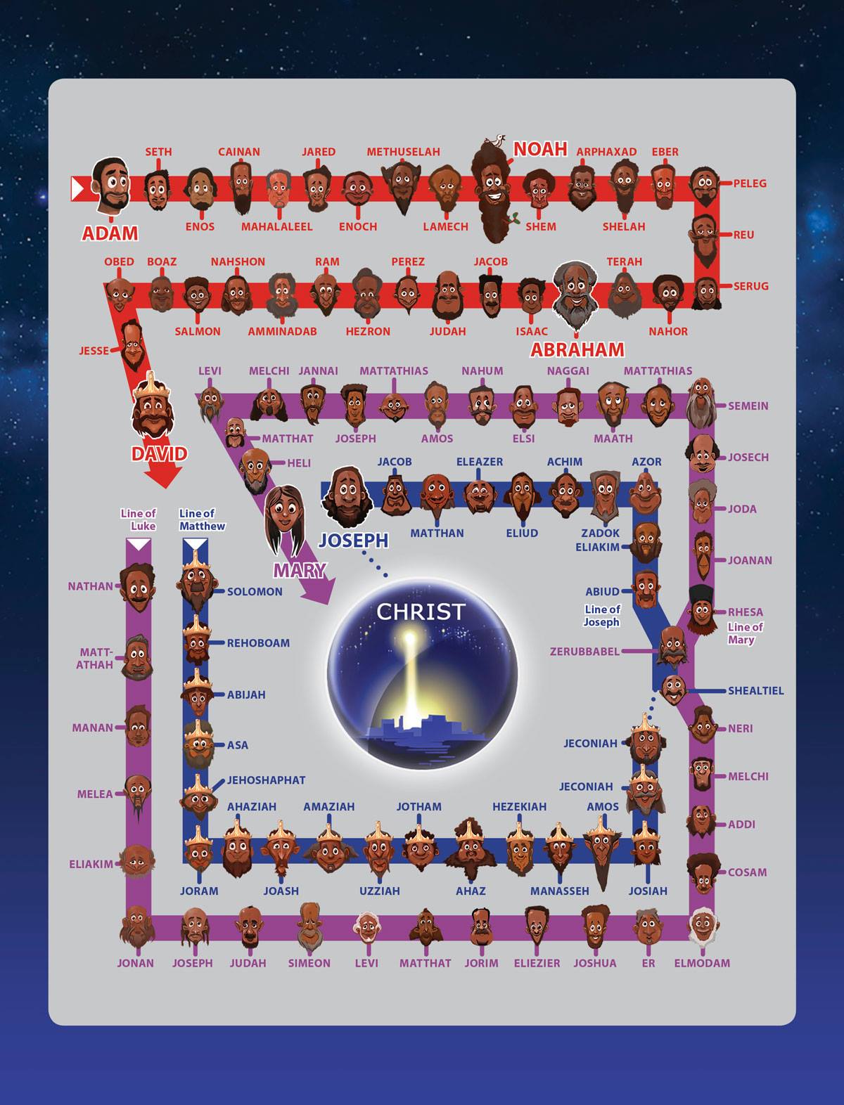 Tất nhiên đây không phải là gia phả hoàn chỉnh, nhưng tất cả các tên được nêu trên đều xuất hiện cách này hay cách khác trong Cựu Ước Do Thái. Có bốn người phụ nữ được nêu tên gồm Ta-ma, Ra-ha, Rút và Maria. Mỗi người họ đều có những đặc tính tốt theo cách riêng. Nhưng cũng có rất nhiều trong gia phả là những kẻ vô lại, thậm chí gồm cả vua Đa-vít, một trong những người tôi tớ xuất chúng của Thiên Chúa, đã từng là một kẻ ngoại tình và giết người (không tính những người ông giết trong chiến tranh).