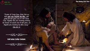 Hôm nay, hãy nghĩ xem bạn đã noi theo tấm gương khiêm nhường của Thiên Chúa chúng ta hay chưa. Bạn có được trao phó việc tìm cách phục vụ người khác, cho họ thấy bạn yêu thương và quan tâm đến họ không? Hãy để Thứ Năm Tuần Thánh biến đổi bạn để bạn có thể noi theo mẫu gương tình yêu tuyệt vời mà Đức Giê-su đã trao cho chúng ta vào đêm huy hoàng này.