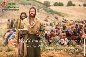 Bài đọc hôm nay tường thuật về quyền năng vô biên của Chúa Giê-su đối với các nhu cầu thiết yếu của con người, đó là những nhu cầu về tinh thần, cảm xúc, mối tương quan giữa người với người trong xã hội và sau cùng là nhu cầu vật chất. Một bức tranh sinh động hiện ra qua bài tin mừng, có những đám rất đông dân chúng mang theo bao khổ đau đè nặng trên thân xác và lắm ưu tư phiền muộn chất chứa trong tâm hồn đến bên Chúa Giê-su, trong họ tràn ngập niềm vui và kinh ngạc khi được Chúa Giê-su chữa lành và bồi bổ. Tất cả làm nổi bật lên hình ảnh của một Thiên Chúa giàu lòng từ bi và thương xót đối với con người yếu đuối, chạy đến bên Người mong được cứu giúp. Họ bất chấp những khó khăn về phương tiện, gia đình, công việc để đồng hành cùng Chúa Giê-su suốt 3 ngày để nghe Người giảng dạy và chữa lành. Họ đã thấm mệt vì thời gian khá dài và cần được nghỉ ngơi ăn uống.