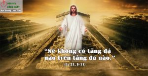 “Nhân có mấy người nói về Đền Thờ được trang hoàng bằng những viên đá đẹp và những đồ dâng cúng, Đức Giê-su bảo: “Những gì anh em đang chiêm ngưỡng đó sẽ có ngày bị tàn phá hết, không còn tảng đá nào trên tảng đá nào.” Họ hỏi Người: “Thưa Thầy, vậy bao giờ các sự việc đó sẽ xảy ra, và khi sắp xảy ra, thì có điềm gì báo trước?”