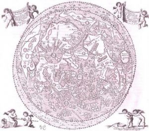Giovanni Battista Riccioli (1589-1671) và Francesco Maria Grimaldi (1618-1663) là hai tu sĩ Dòng Tên người Ý đã đặt nền móng trong việc nghiên cứu Mặt Trăng khi xuất bản quyển sách Almagestum Novum (1651) miêu tả cụ thể các đặc điểm của các miệng núi lửa và nhiều đặc điểm khác của mặt trăng. Cả hai đã góp phần trong việc xây dựng khoa nghiên cứu mặt trăng ngày nay.