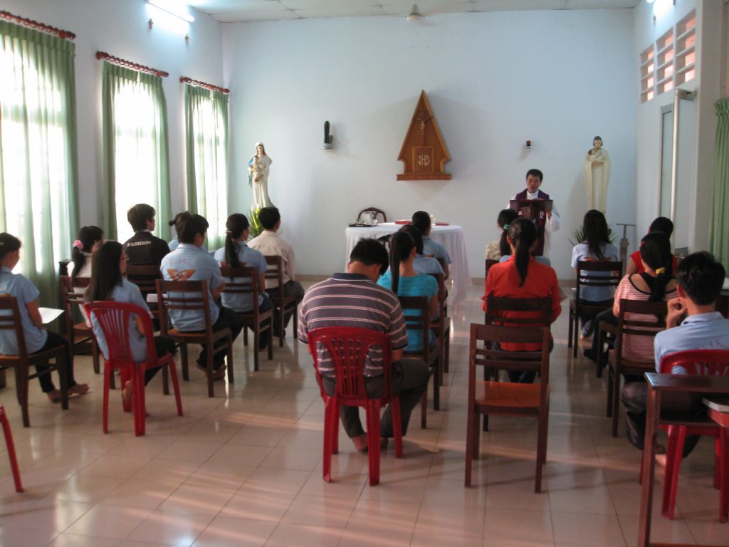 Buổi chiều, vào lúc 2 giờ 15, các bạn tiếp tục được Thầy Ngọc Tín, SJ. gợi ý cầu nguyện và xét mình.