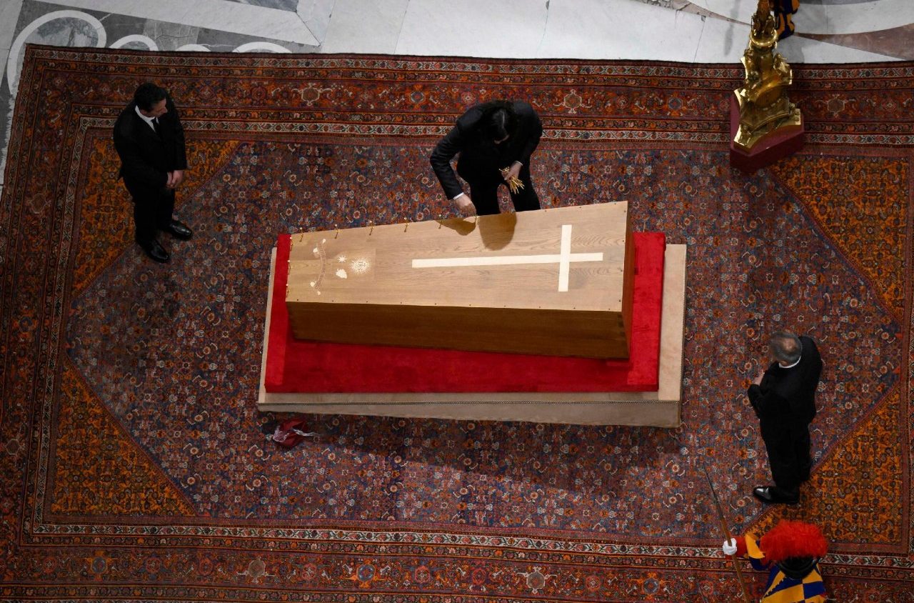Vào lúc 8 giờ thứ Sáu ngày 25/4/2025 (giờ Roma), Đức Hồng y Kevin Farrell, Nhiếp chính của Giáo hội sau khi Đức Thánh Cha qua đời, đã chủ sự nghi lễ phụng vụ tại Đền thờ Thánh Phêrô niêm phong và đóng nắp linh cữu của Đức Thánh Cha.
